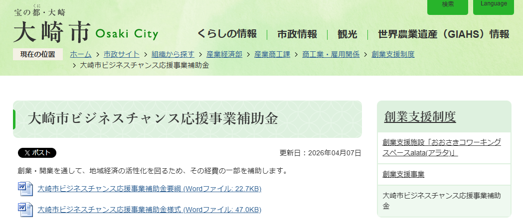 それが「大崎市ビジネスチャンス応援事業補助金」です。