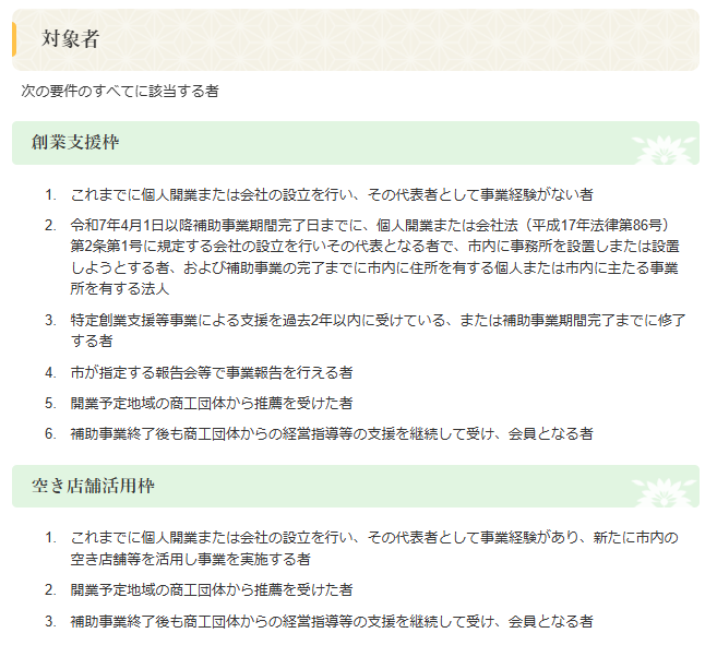 ※店舗の改装工事の施工業者については,市内に住所又は事務所を有する業者とし,設備,備品購入先については,原則として市内に住所又は事務所を有する業者とする